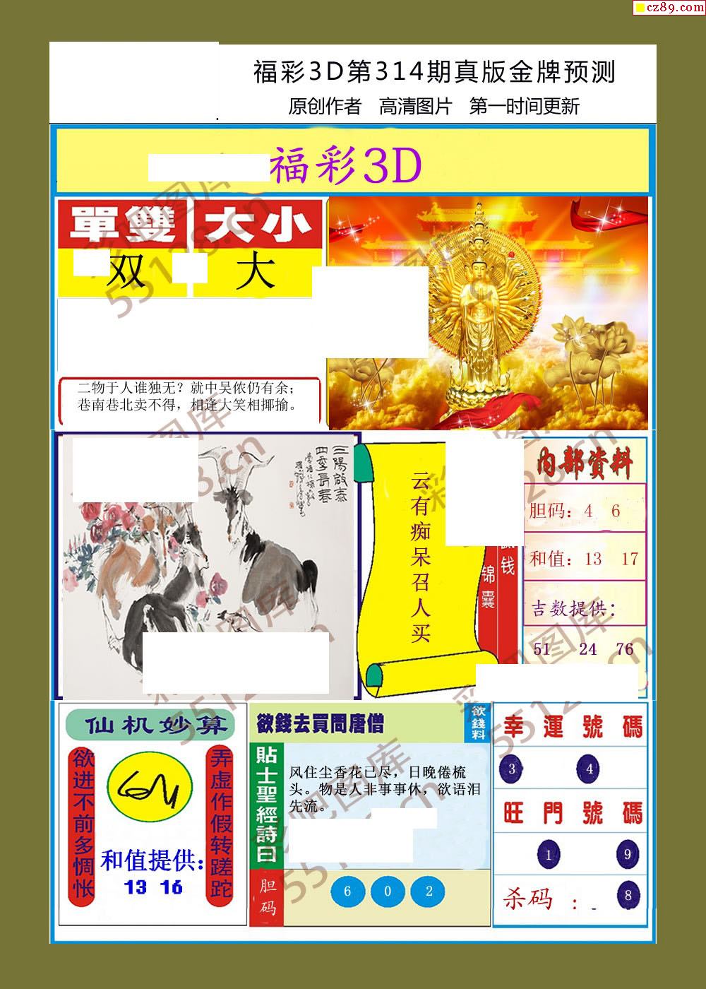 福彩3D2025313期 山上的羊飞鸟胆码图